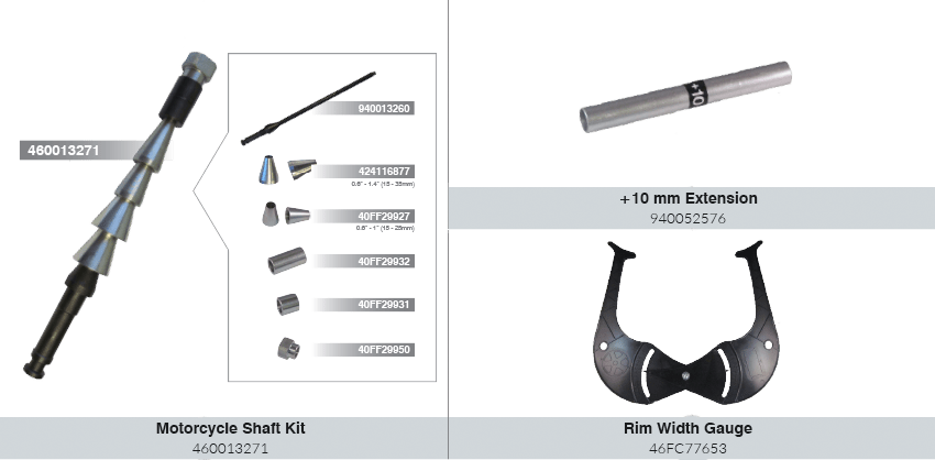 An exclusive design which saves time and provides a superior balance by eliminating the removal of wheel bearings and ensuring the wheel is centered on the motorcycle. The K22 can handle multiple applications including scooters, single swing arm wheels and super-wide Harley wheels.